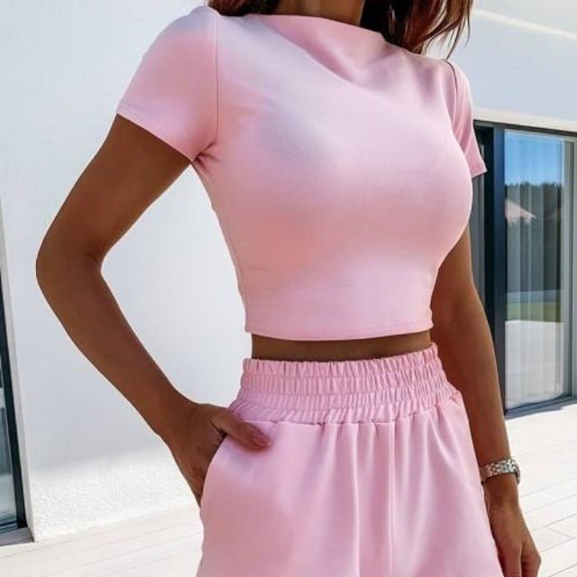 Casual Crop Top And Shorts 2 Piece Set