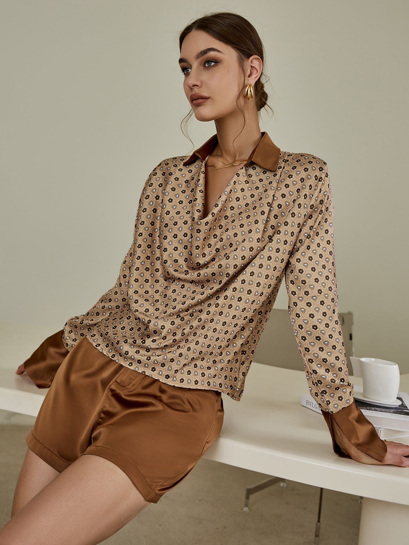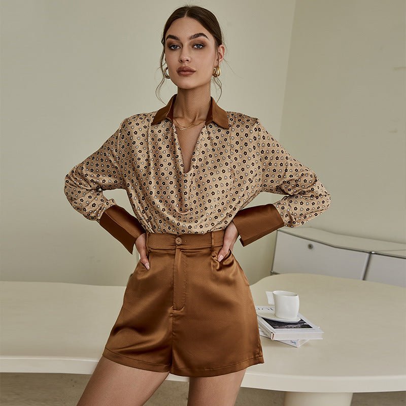 Women's Two-piece Dress Set is a must-have for your next event. The suit is perfect for dance, party, costumes, or even as your everyday wear! The top features a loose fit, long-sleeves, front button zipper, crop length, flare long sleeves, and the skirt stands with solid color, short-length, high-waist, lace closure, etc. The Casual Satin Top Set can be a perfect undergarment.