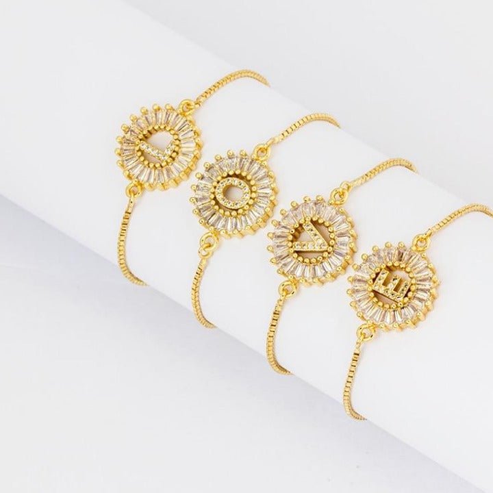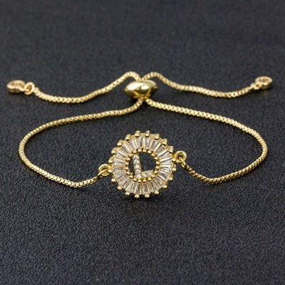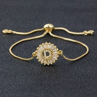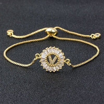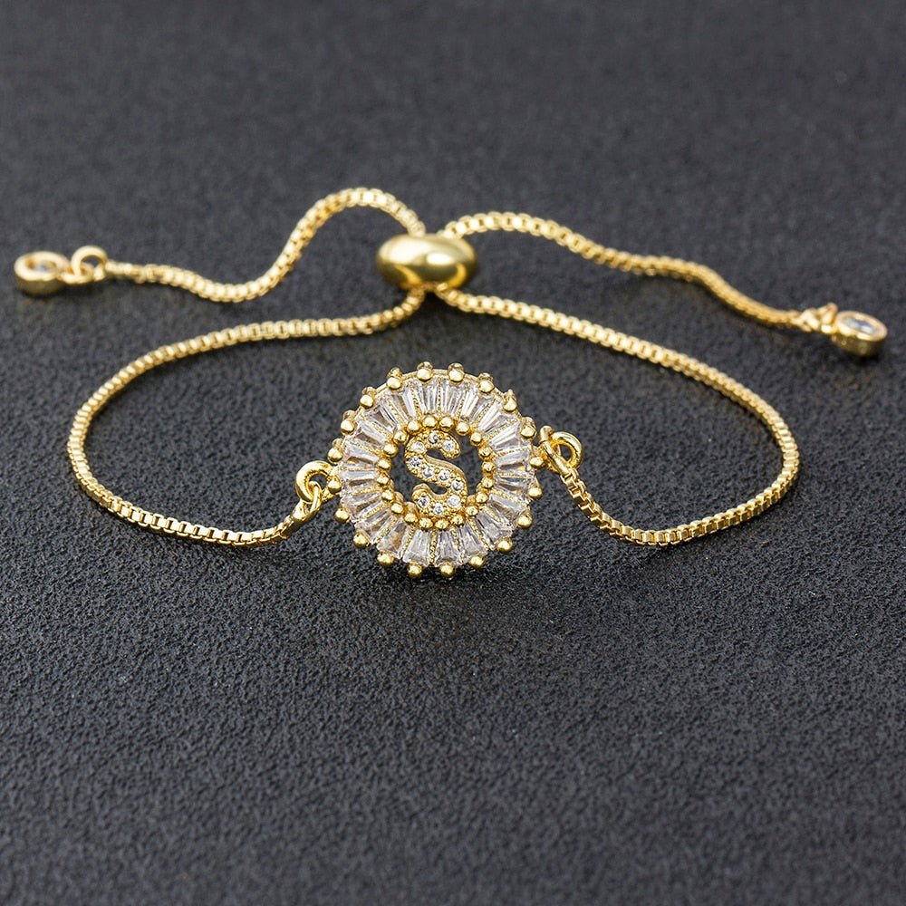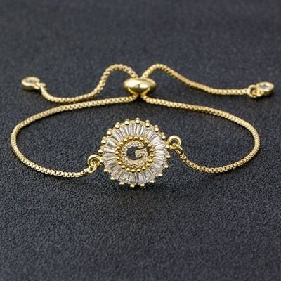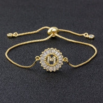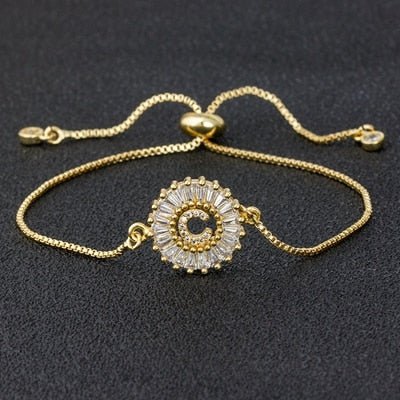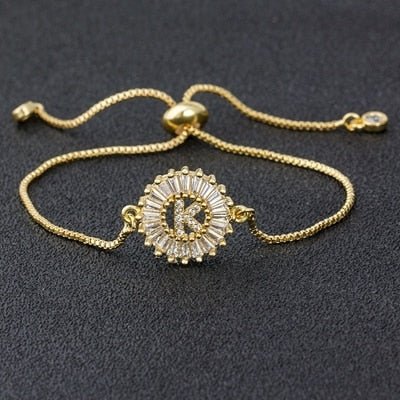 Cubic Zircon Adjustable Letter Charm Bracelet