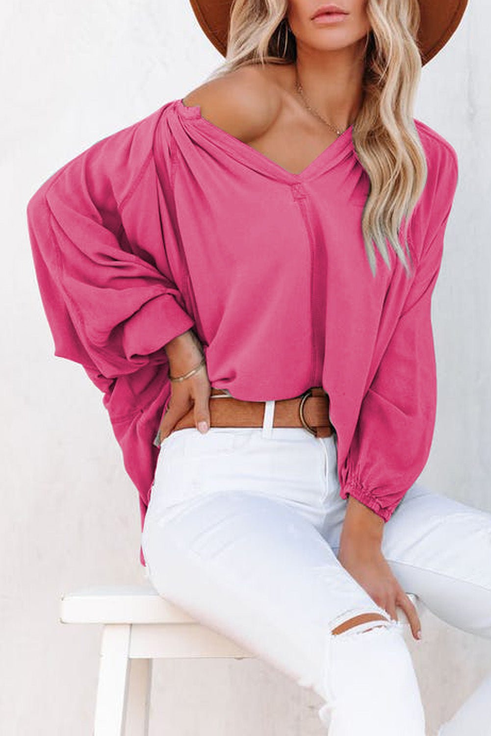 Split V Neck Dolman Top