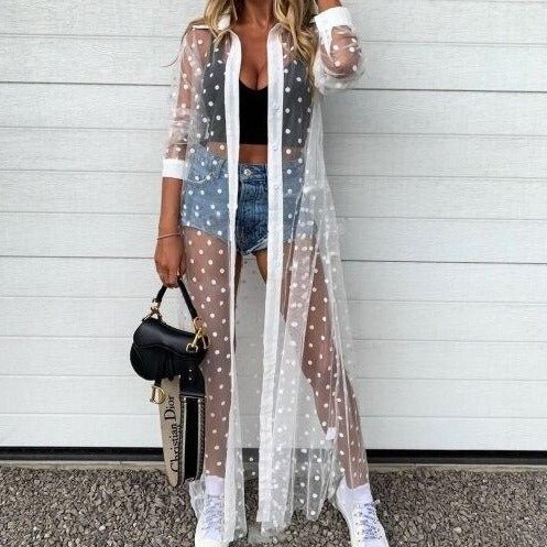 Our Polka Dot Bikini Cover Gown is a built-in high combination of cotton and polyester fabric. It will make you feel comfortable, soft, and breathable. The Dress features a complete split design, full-sleeves, polka dot pattern, see-through fabric, etc. The Beach Cover-up Dress blows in the air when you walk on the beach or an airy place. That can make you feel enjoyable weather.