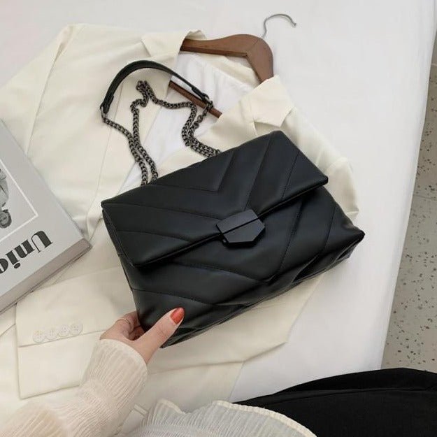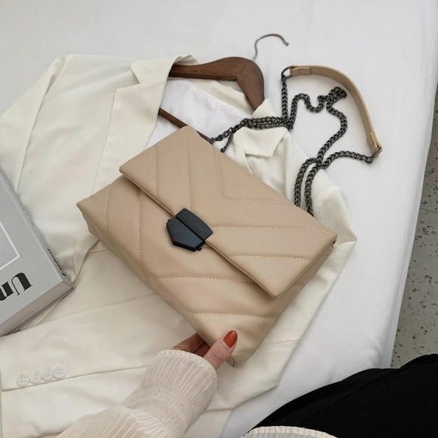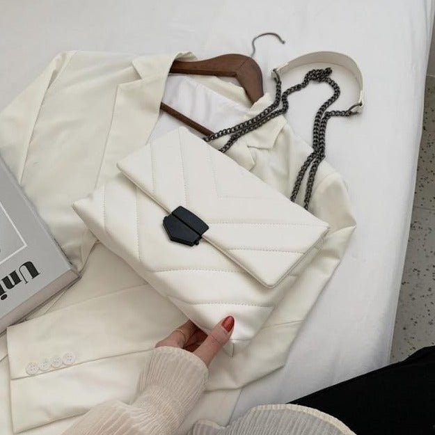 The Chains Strap Bag is built-in high-quality soft PU leather and polyester stuff. It features a soft, comfortable touch with long-lasting durability. This bag is closed with a clasp closure system that can guard what is in this bag. This bag has a removable and adjustable long shoulder strap that can imply a handbag, single shoulder, or crossbody bag.